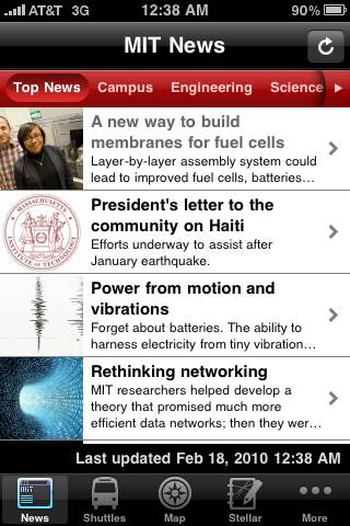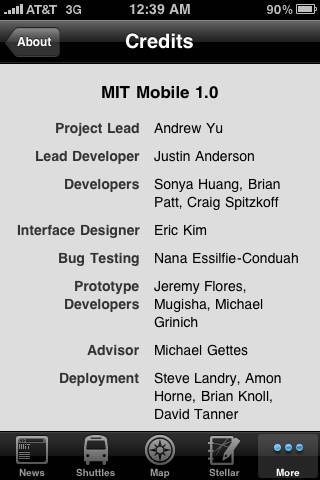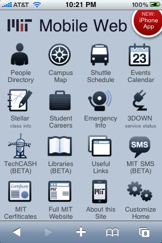 MIT는 m.mit.edu라는 주소로 거의 모든 휴대폰에 최적화된 모바일웹페이지를 일찍부터 제공하고 있었습니다. 그런데 아이폰앱은 2월초에 막 1.0버전이 처음 나왔습니다. 아이폰이 나오지 얼마안된 한국이라면 이해가 되지만 이미 아이폰출시가 3년이 된 미국에서, 그것도 MIT가 아이폰전용앱을 이렇게 늦게 내놓았다는 것은 좀 이해가 안됐습니다. 물론 훌륭한 앱이긴 하지만요. 그래서 왜 그런 것인지 물어봤습니다.