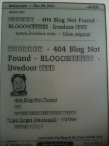 -UI조작 : UI, 즉 주위 버튼과 키보드는 잘 배치되어 있으며 조금만 익숙해지면 사용하기가 어렵지 않다. 그런데도 불만이라고 하는 것은 역시 아이폰을 사용하고 있기 때문에 느끼는 것인지도 모른다. 터치스크린으로 사용할 때 얼마나 더 편리한지를 알게된 지금은 버튼을 일부러 누르는 것보다는 화면을 바로 터치해서 이용하고 싶다. 특히 모르는 단어를 사전에서 찾아볼때 내비게이션막대를 움직여서 커서를 궁금한 단어까지 힘들게 이동시켜야하는데 매번 할때마다 짜증이 난다. 아이폰 Instapaper앱에서는 그냥 단어를 터치만 하면 뜻을 찾을 수 있는데…