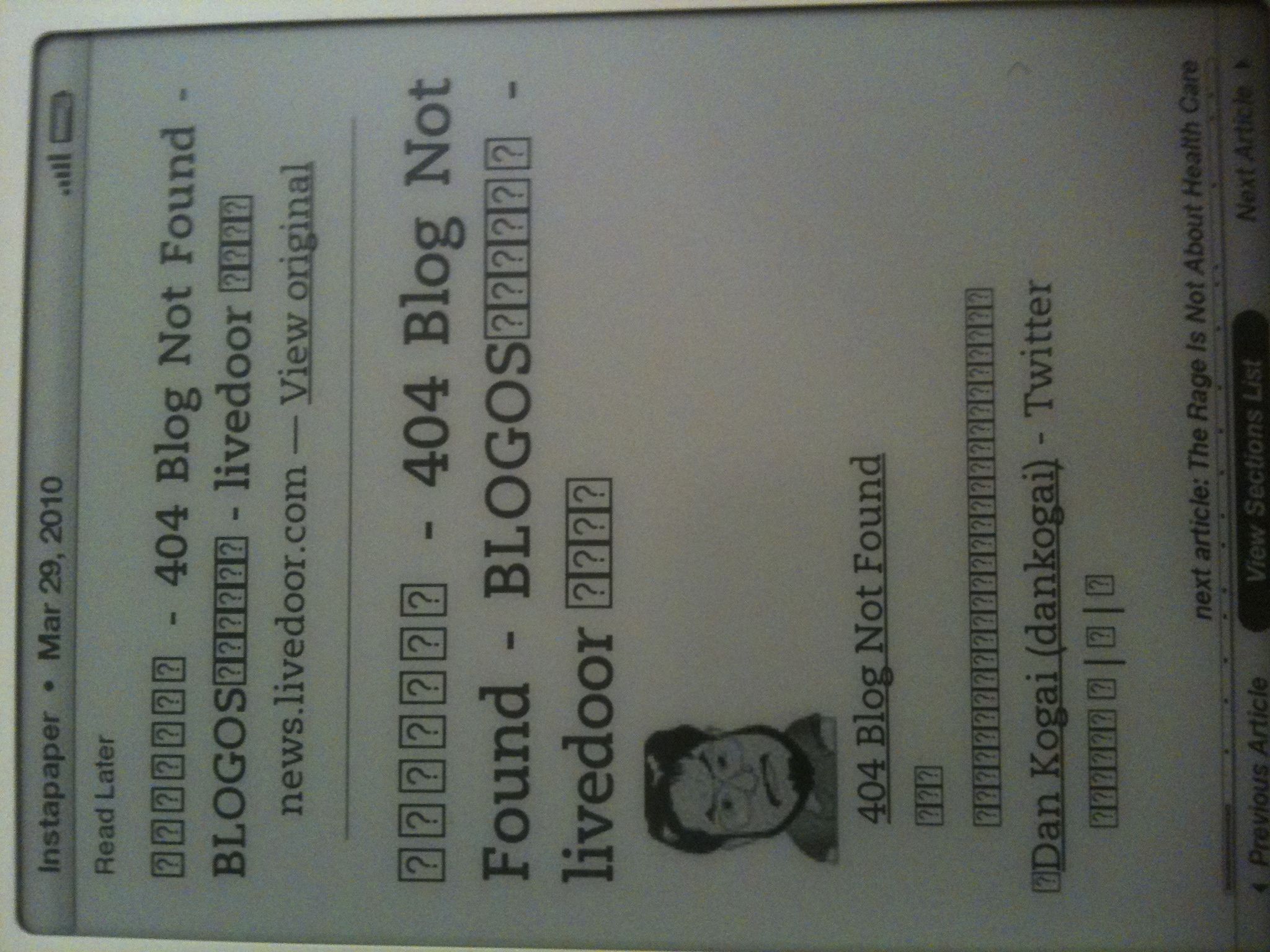 -문서 다운로드 비용 : wifi가 안되기 때문에 Kindle에 PDF문서를 넣거나 Instapaper와 싱크를 하기 위해서는 이메일로 아마존에 문서를 보내서 싱크시키는 방법이나 USB로 연결해서 집어넣어야 한다. 이 경우 무선으로 싱크할 경우 몇십센트인가 비용이 청구된다. (큰돈은 아니지만 매일 이 작업을 반복할 경우 상당한 비용이 될 수 있다. 그래서 귀찮지만 매번 USB로 Instapaper를 싱크시키는데 이게 제법 귀찮다)
