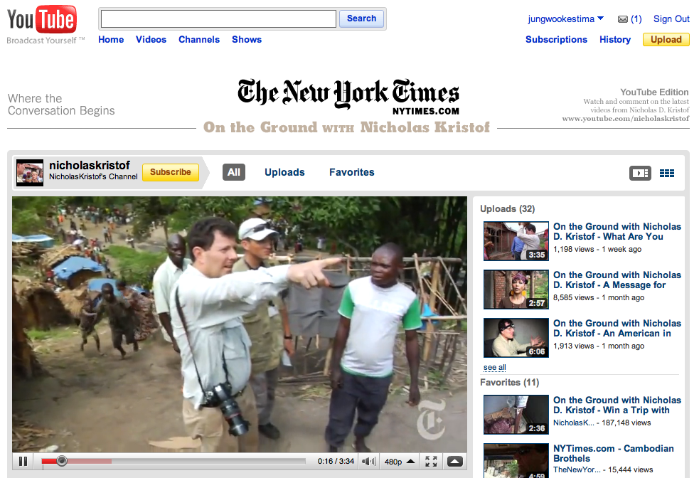 사실 NYT의 대표컬럼니스트라는 것만으로도, 퓰리처상을 두번이나 수상한 저널리스트라는 것만으로도 이 사람은 대단한 권위를 가지고 있다고 볼 수 있다. 그런데도 그에 안주하지 않고 본인이 직접 나서서 블로그, 페이스북, 유튜브, 트위터까지 적극적으로 운영하면서 독자들과 소통하고 있다는 것이 참 놀라왔다. 니콜라스는 평균이상으로 소셜미디어에 적극적인 경우지만 가만 보면 미국 언론인들에게 있어 트위터나 페이스북을 통한 소셜미디어활용은 이미 상식이 된 것 같다.