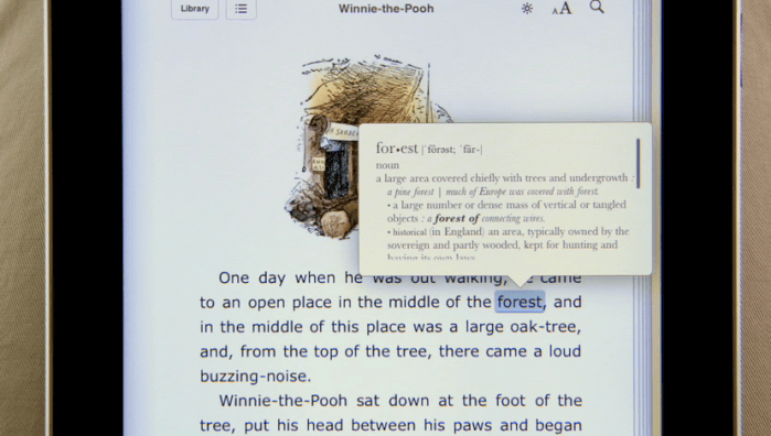 단어검색, 챕터이동 등도 킨들과 비할 바 없이 쉽다. 손가락으로 터치만 하면 되기 때문이고 UI가 상당히 직관적인 듯 싶다. 킨들보다 이용방법을 학습하는데 드는 시간이 휠씬 적을 것으로 생각된다.