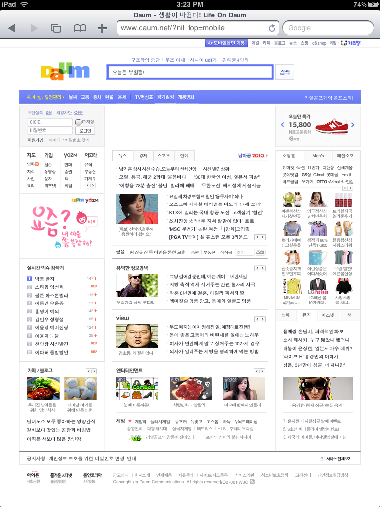 웹화면을 손가락으로 터치해가면서 브라우징한다는 개념이 좀 새롭긴 하다. 그런데 아이폰에서 워낙 익숙해져서 그런지 별 위화감 없이 웹서핑을 할 수 있었다.