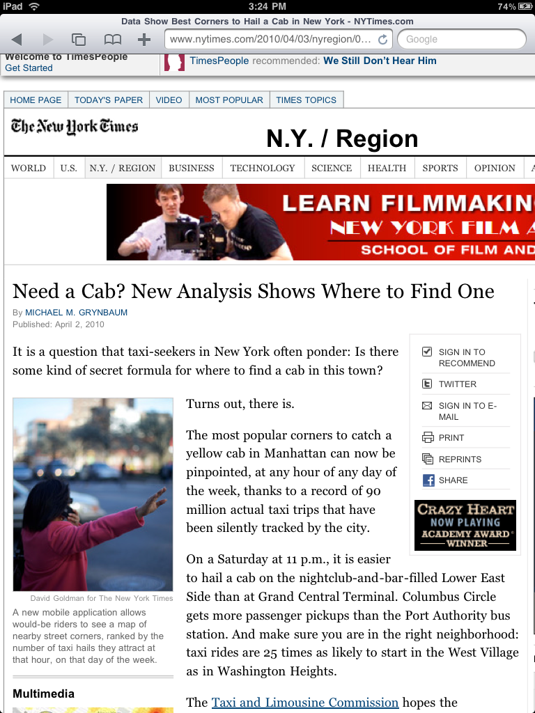 뉴욕타임즈를 그냥 사파리로 들어가서 기사부분만 멀티터치로 확대해서 읽으면 위와 같은 화면으로 나온다. 가독성이 좋은 듯.