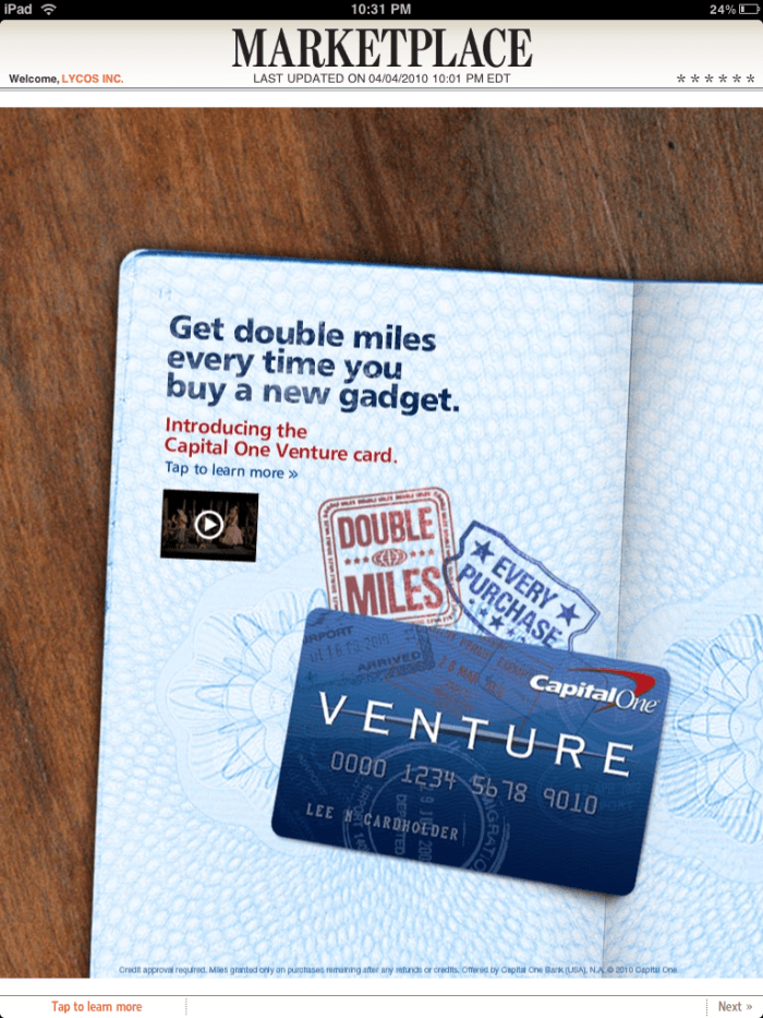 지난 포스팅에서 월스트리트저널을 도배하다시피한 아이패드의 영향력에 대해서 쓴 일이 있다. 그것이 월요일자였는데 일주일동안 월스트리트저널은 WSJ 아이패드광고를 끊임없이 내보냈다. 얼마나 뉴스콥(WSJ의 모회사)가 아이패드에 기대를 걸고 있는지 알 수 있다. 오늘은 전면광고는 안나오고 반면광고로 또 나왔다.