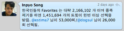 송인표님은 내 트윗이 이렇게 많이 Favorites된다는 분석을 해주셨다. 이것도 참 뜻밖이다.