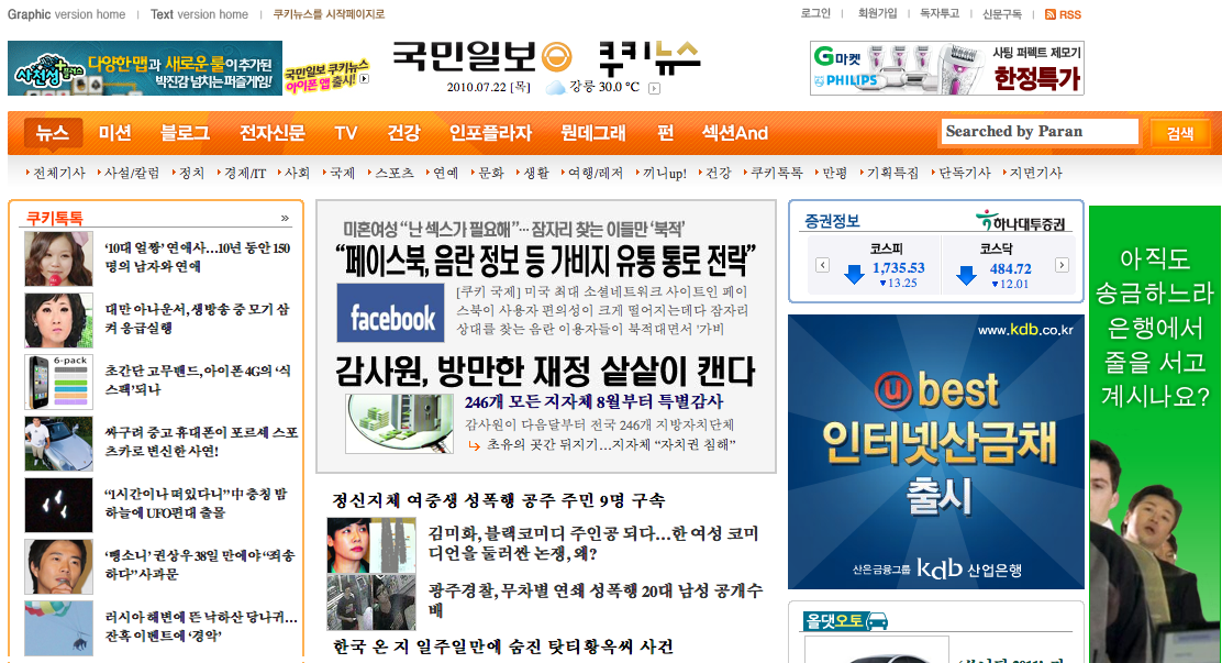 2. 저는 임 대표님의 글의 의도보다는 마지막 단락의 한국 언론의 현실에 참 얼굴 찡그려지네요. 한국 언론사 인터넷 홈페이지에 가보면 메인에 버젓이 떠있는 성인광고…. 참 뭐라 말이 안나오네요. 그나저나 소셜네트워크 이거 재밌겠네요. ㅎㅎ