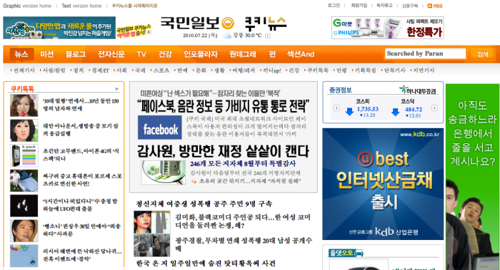 한편 페이스북이 5억사용자 돌파 팡파레를 울린 날, 우연히 한국포털사이트를 통해 아래 기사를 접했다.