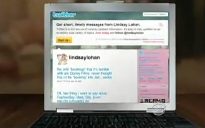 린제이로한의 수감사실을 보도하면서 그녀의 트위터인용.