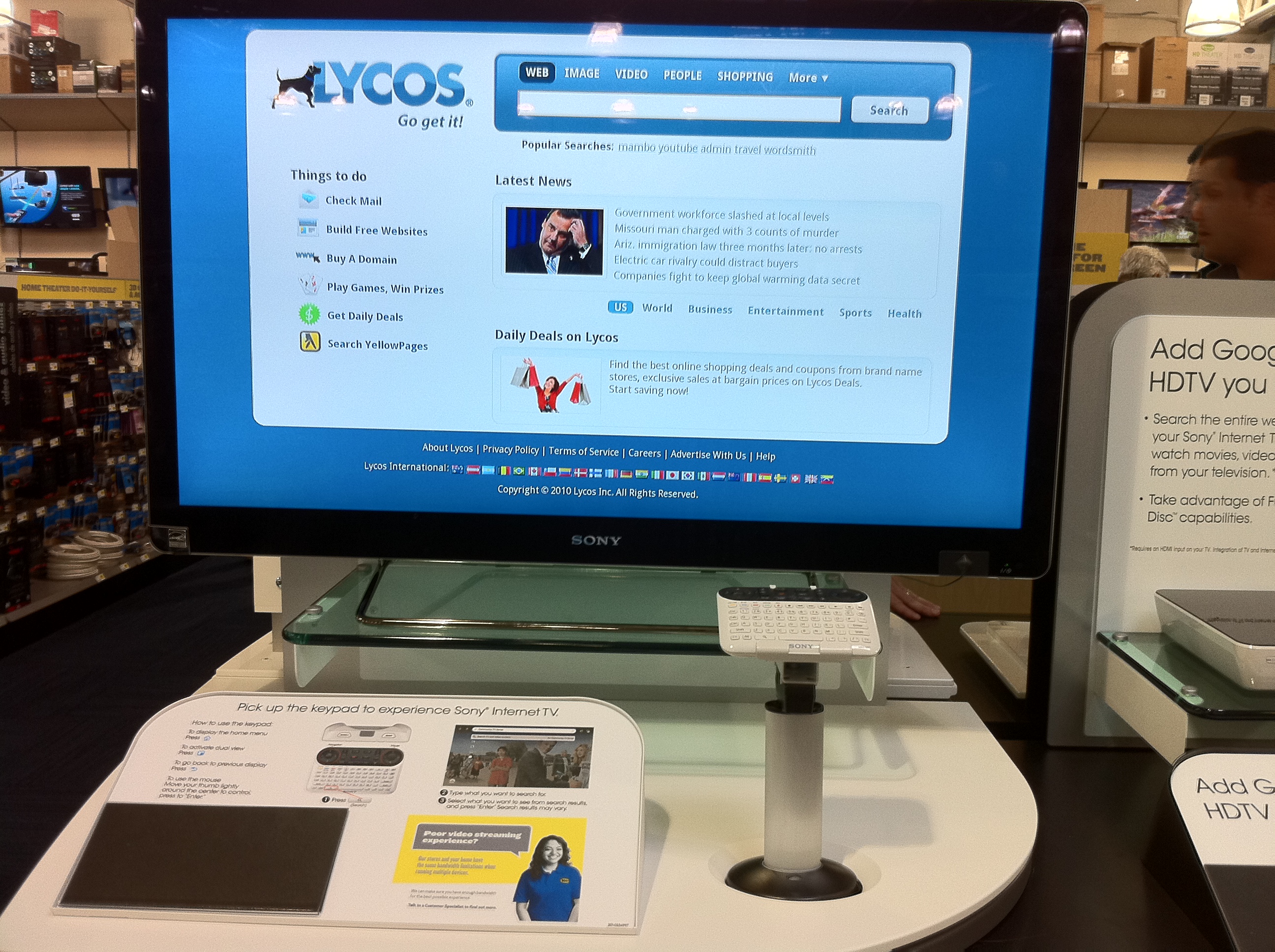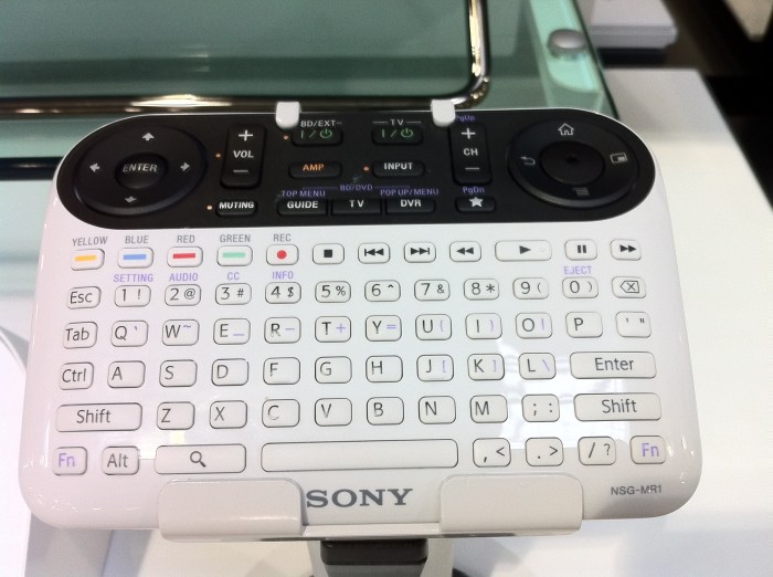 솔직히 복잡한 소니 구글TV 콘트롤러보다는 일반컴퓨터 키보드와 비슷한 로지텍의 키보드형 콘트롤러가 좋아보였지만… 베스트바이의 데모기기는 어떤 이유에서인지 작동이 되지 않았음.