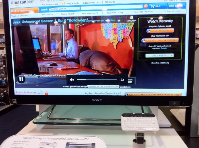 아마존 홈페이지에 들어가서 VOD서비스를 실행해봄. 플래시를 지원해서 그런지 잘 나오기는 했지만 컴퓨터를 TV에 연결한 것과 별 차이가 없음.