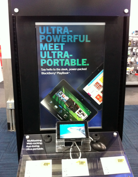 오늘 베스트바이에 갔다가 지난주부터 새로 시판된 RIM의 블랙베리 플레이북을 잠시 만져보다. 아이패드2, 허니콤 안드로이드타블렛 등이 벌이고 있는 타블렛전쟁에 새로 참가한 선수다.