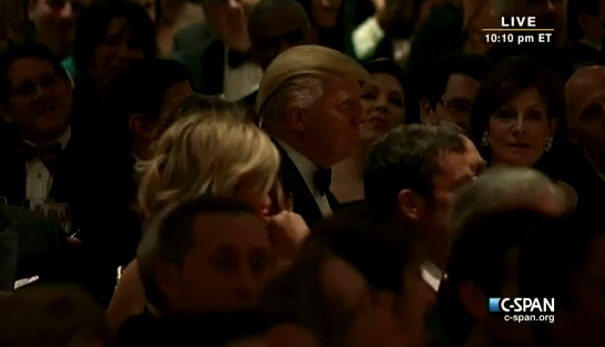 그는 특히 이날 워싱턴포스트의 초청으로 만찬에 참석한 도날드 트럼프를 집중적으로 놀렸다.
