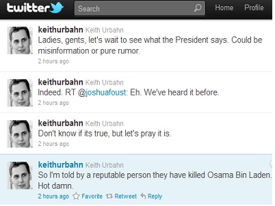 브라이스 로버츠는 10년전인 2001년 9/11당시 모든 정보를 TV와 라디오를 통해서 얻었다. 그런데 지난 일요일(5월1일) 하루종일 오프라인상태였다가 밤 9시(미국동부시간) 아이폰과 트위터를 켜자마자 오사마 빈라덴의 사망설을 처음 접했다. 잠시후에는 그 사실을 확인하는 트윗을 접했다. 그리고 또 오바마의 기자회견을 유튜브를 통해서 실시간으로 봤다. 이어서 인터넷에서 작전이 실행된 파키스탄의 Abbottabad를 구글어스, 맵으로 확인했다. 또 미국인들의 환호를 트위터를 통해 각종 사진(트윗픽)과 동영상으로 실시간으로 접할 수 있었다.