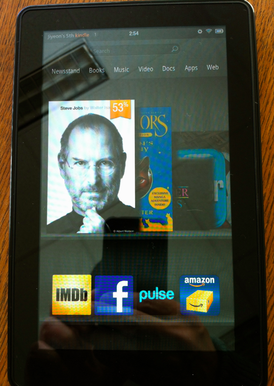 처음에는 좀 써보고 실망한 것이 사실이다. UI가 그렇게 세련되지 못했고 터치감도 아이패드에 비해서 떨어진다. 쓸 수 있는 앱이 제한되어 있으며 웹브라우징도 그렇게 훌륭하지 못하다. 또 아마존을 통해 많은 콘텐츠를 구입할 준비가 되어 있는 열혈 아마존유저가 아니면 별달리 할 수 있는 것이 많지 않다. 저장용량도 8기가로 그다지 크지 않다. 그래서 Wifi가 연결되어 있는 상태가 아니면 클라우드에 있는 동영상이나 음악을 연결할 수가 없어 더더욱 불편하다.