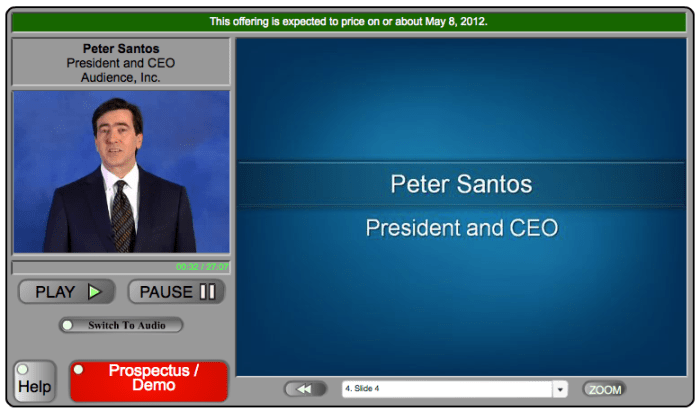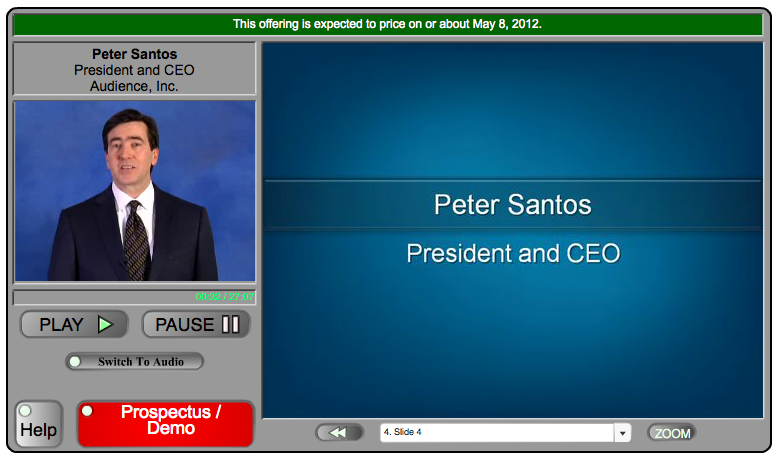 내가 미국식 기업시스템의 강점이라고 생각하는 것은 이렇게 기업정보가 다른 나라에 비해 비교적 투명하게, 합리적으로, 찾아보기 편하게 제공된다는 것이다. 물론 투자자의 리스크를 최소화하기 위한 것이다. 그래서 신규 상장기업의 경우는 (모두 다 그런지는 모르겠지만) 이런 식으로 동영상 투자설명회 자료가 소개된다. 이런 발표내용을 들어보면 그 업체 뿐만 아니라 그 산업계의 경쟁현황까지도 크게 공부가 되는 것은 물론이다.