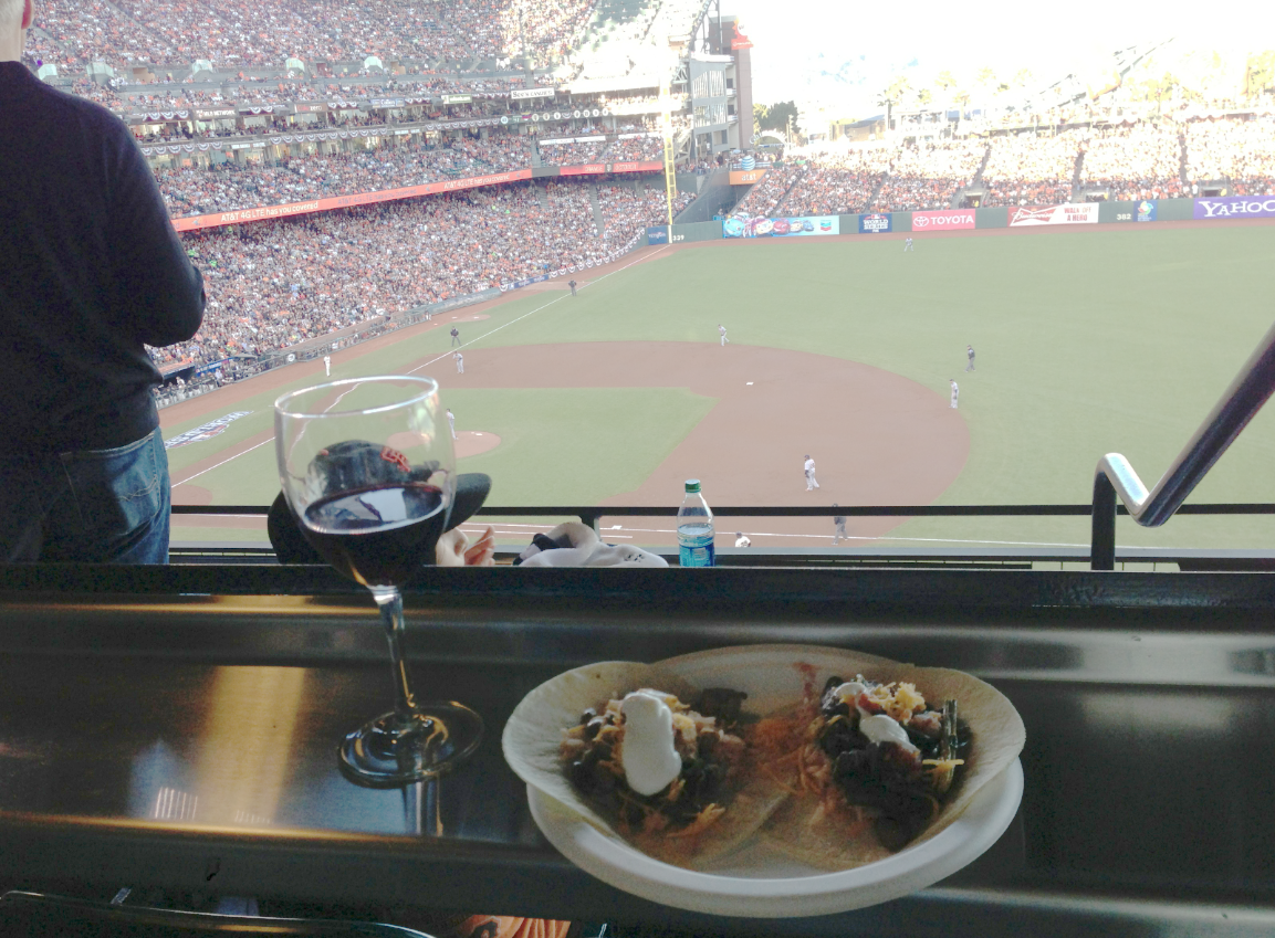 나도 타코와 와인을 즐기며 경기관람. AT&T파크 아니랄까봐 AT&T wifi가 빵빵하게 잡히는 경기장.