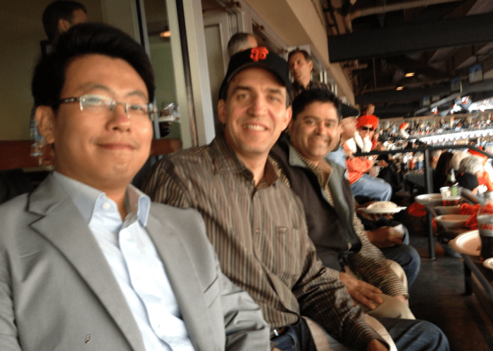 그리고 나를 초청해준 고마운 Artiman Ventures의 톰과 아킬. SF 자이언츠의 홈게임이 일년에 80번있는데 그중 40번의 경기를 이 스위트에서 관람할 수 있도록 계약했다고 한다. 2006년부터 이렇게 하고 있는데 2010년에도 월드시리즈우승하고 올해도 결승에 진출해 훌륭한 투자였다고 흐뭇해하는중.