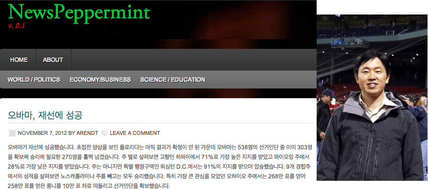 올 7월부터 시작된 뉴스페퍼민트(트위터 @newspeppermint)는 동부의 하버드대에서 박사후과정에 있는 이효석씨(@hyoseok)가 주도해서 시작했다. 그도 “세상은 점점 좁아지는데 한국에 소개되는 외신뉴스의 양은 매우 적고, 그것도 잘못 전달되는 것이 많다”며 “그래서 중요한 외신뉴스를 모바일에서 읽기 쉽게 짧게 요약해서 전하는 매체를 만들고 싶었다”고 말했다. 이박사도 뜻이 맞는 동료를 찾아서 공동작업을 하고 있다. 하버드대학원에서 정치경제학 박사과정에 있는 유혜영씨(@hyeyoungyou)와 SBS 국제부기자출신인 남편 송인근씨가 뉴스페퍼민트에 같이 참여하고 있다. 이들은 각자의 전문분야를 살려 정치, 경제, 비즈니스, 과학분야의 읽을만한 기사를 매일 10개씩 골라내서 읽기 쉽게 요약해 제공한다. 주요테크뉴스를 전하는 테크니들과 달리 뉴스페퍼민트의 관심분야는 아주 넓다. 뉴욕타임즈같은 유력지의 기사외에 과학전문지인 사이언티픽아메리칸의 “남녀간에 친구사이가 가능할까요?” 같은 쉽게 접하기 어려운 글까지 발굴해서 소개한다.