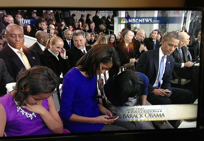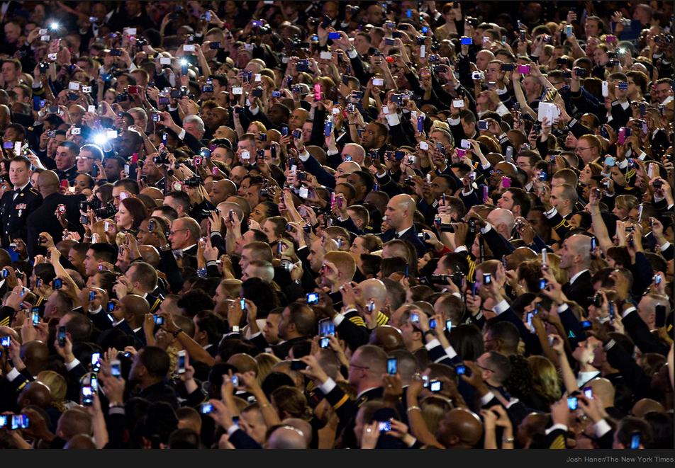 그런데 오늘 2013년 1월21일 두번째 취임식에서는 이런 모습이 비춰졌다. 카메라가 어디를 향하던 보이는 스마트폰의 물결에 확실히 스마트폰시대에 접어든 것을 실감한다.