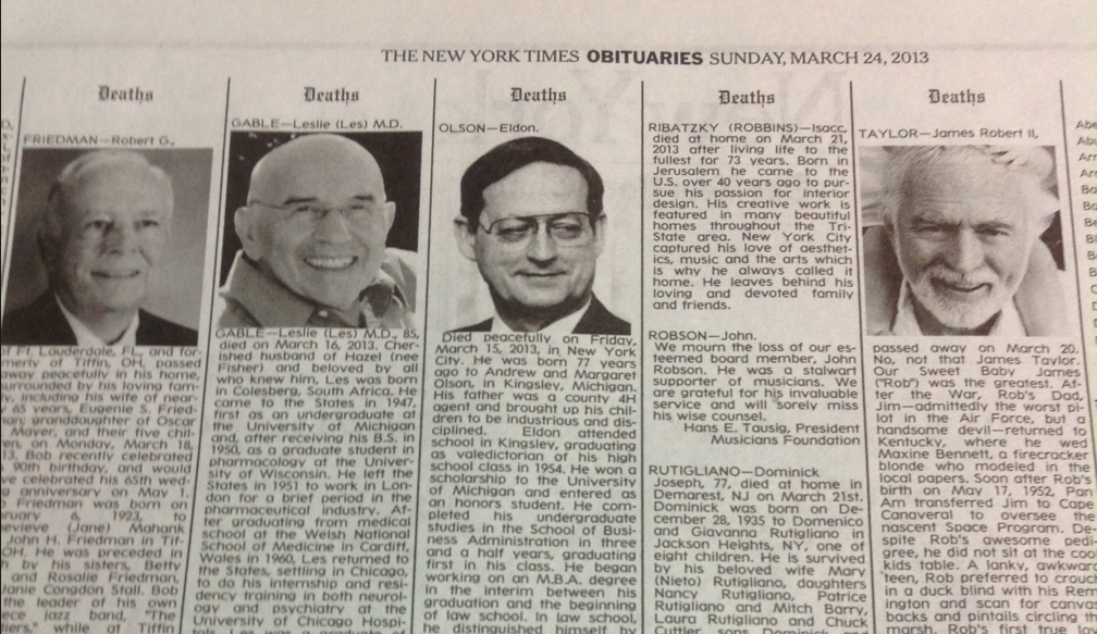 이런 문제의식(?)을 갖게 된 것은 미국신문의 Obituary를 읽게 되면서부터다.