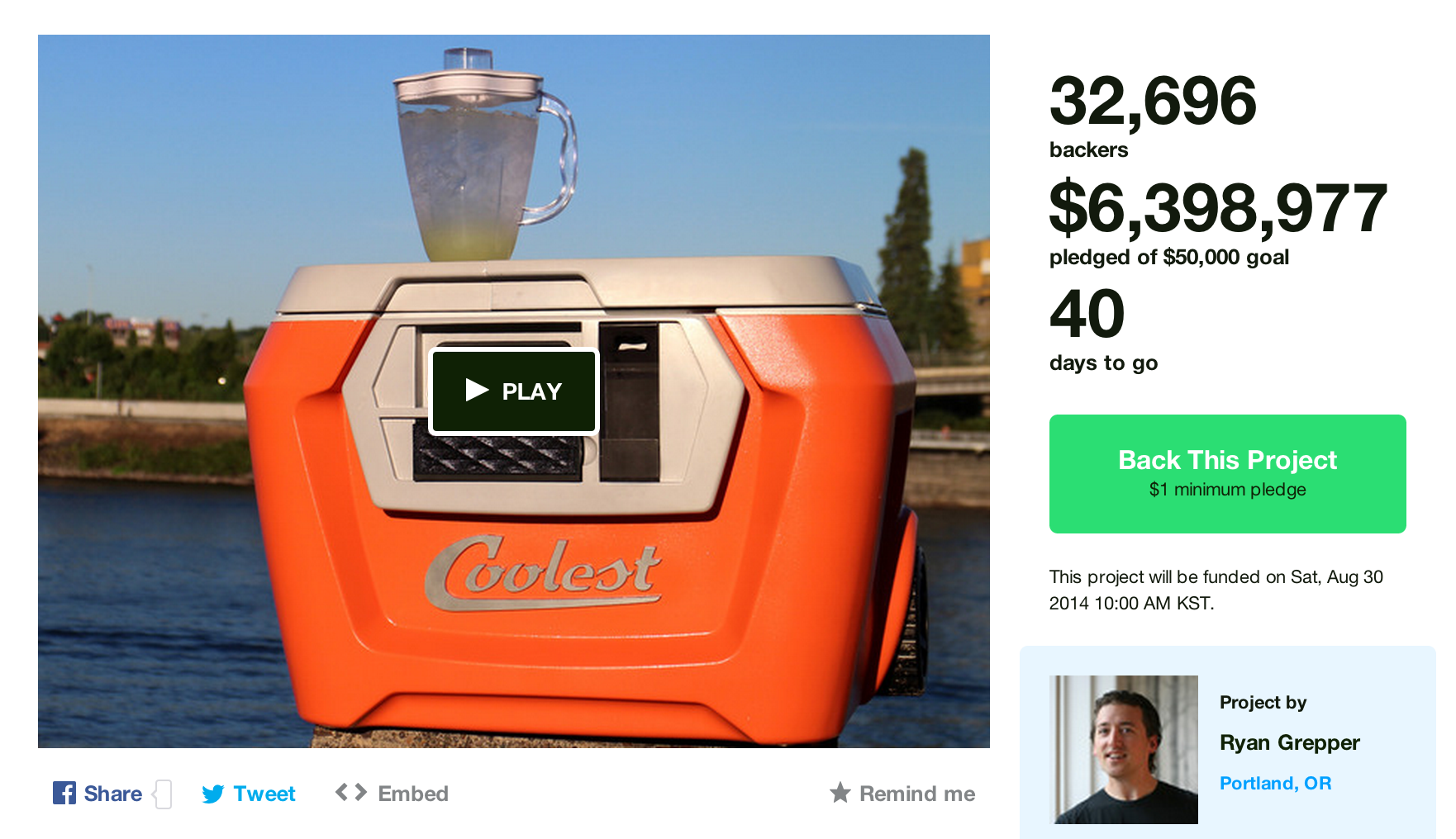 만능 아이스박스. 스마트폰 USB충전기도 되고, 믹서도 돌릴 수 있고, 병도 딸 수 있고… 깜짝 놀란 것이 킥스타터에서 자그마치 6백만불이상을 모금했다. 이런 만능 아이스박스를 열망하는 사람이 많았다보다.