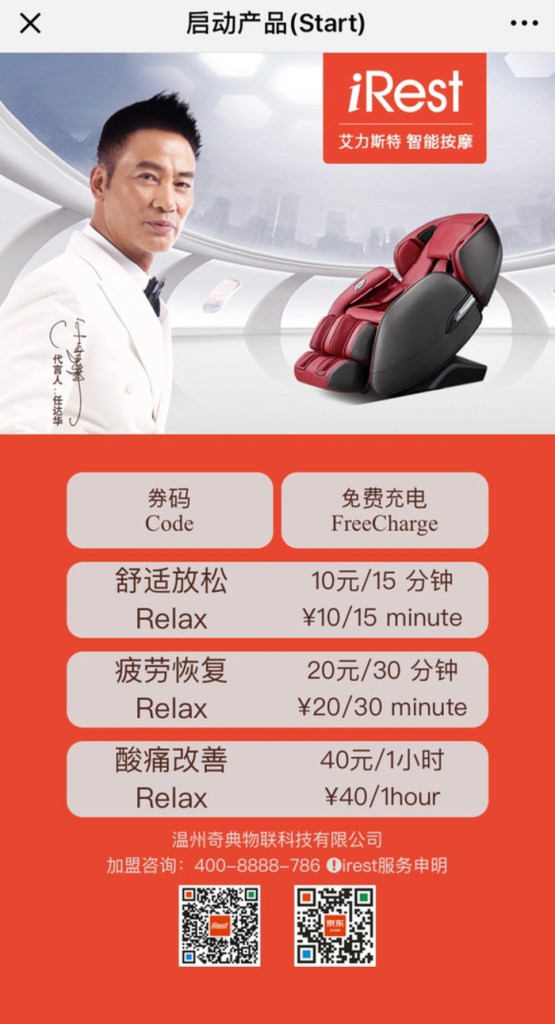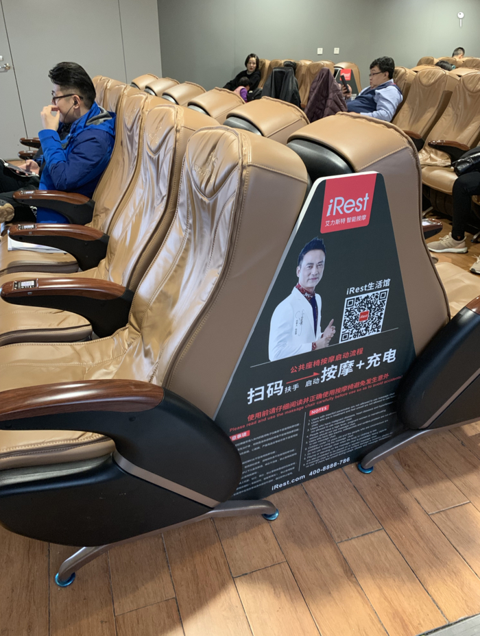 휴가차 쿤밍으로 가는 길에 난징공항을 경유. 인천공항에서 2시간 비행. 그런데 게이트앞에 이런 안마의자가 있다. iRest.