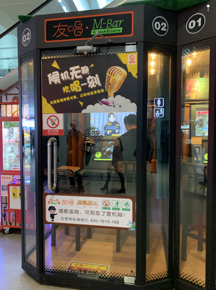 공항 곳곳에는 1인용 노래방이 많다. 역시 결제가 간단하기 때문에 가능한 비즈니스. 편리한 모바일결제 덕분에 정말 다양한 비즈니스가 생기는 중국의 모습을 갈때마다 목도하게 된다. 공항에서 군것질, 쿤밍공항에서 호텔까지의 택시요금, 호텔앞 가게 등 어디에서도 현금을 낼 일이 없다. 내가 외국인인데도 다들 QR코드를 내밀며 당연히 모바일결제를 할 것으로 생각하는 모습이 놀랍다.