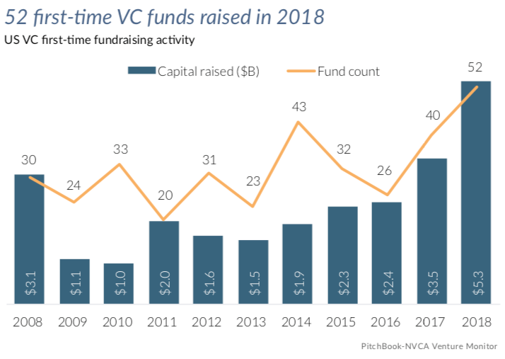기존 벤처투자자들이 스핀오프해서 새로 만든 첫번째 펀드도 52개나 나왔다.