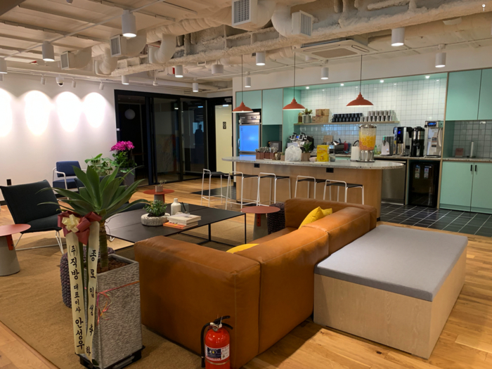 직원들이 휴식을 취할 수 있는 탕비실 공간이다. 커피 제공과 컵 세척 관리까지 위워크에서 맡아서 해준다고 한다.