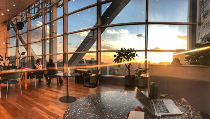 종각역과 연결되어 있는 종로타워빌딩은 33층이다. 위워크는 최상층인 33층을 포함해 8개층을 사용한다. 1800석 규모라고 한다. 그중 한층을 렌딧이 이용하고 있다. 레스토랑 탑클라우드가 있었던 33층은 멤버전용라운지로 바꿨는데 전망과 인테리어가 정말 멋지다.