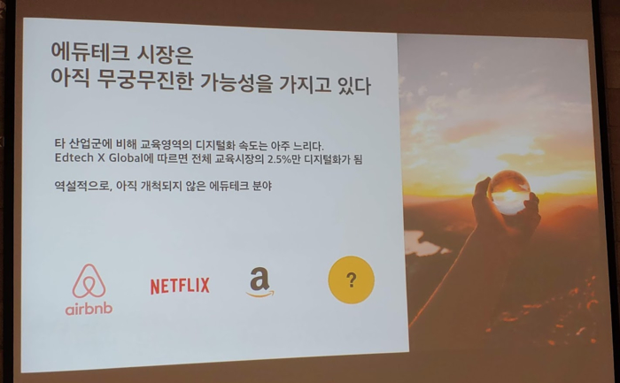 그래서 에듀테크시장은 무궁무진한 가능성을 가지고 있다는 얘기다.