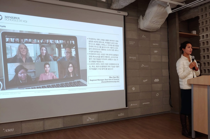 전세계를 돌며 공부하는 혁신대학으로 유명한 미네르바스쿨의 아시아 담당 매니저인 슈카오 모가 와서 소개를 했다.