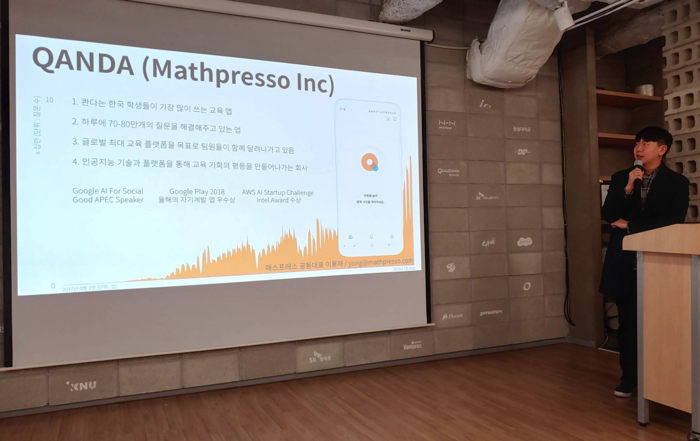 모르는 문제를 사진으로 찍어 올리면 5초만에 해결해주는 콴다. 하루에 70~80만개의 질문을 해결해 주고 있다고 한다. 회사는 매스프레소.