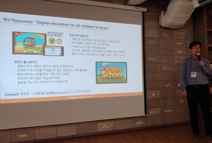 캘리포니아 버클리에 본사를 둔 한국스타트업 에누마. 어린이들이 수학을 쉽게 배울 수 있는 토도수학과 아프리카에서 보급중인 킷킷스쿨을 만들고 있다.