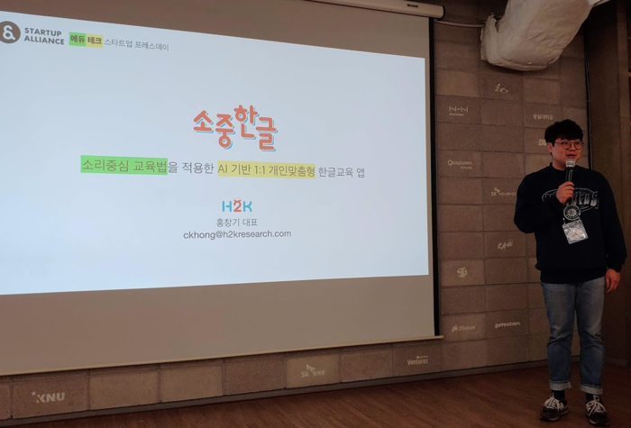 소중 한글. 한글교육 스타트업이 있어서 반가왔다. 인공지능 소리중심 한글 교육앱.