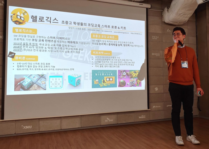 헬로긱스는 초중고학생들의 코딩교육과 스마트 로봇, 키트를 만드는 회사다. 모듈형 하드웨어 키트인 비트브릭이 주력 제품이다.
