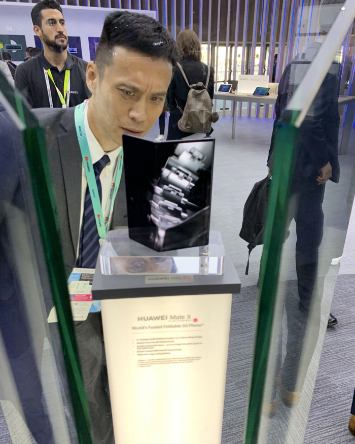 5G통신장비나 인공지능, 스마트시티, 클라우드 전시관에 비하면 화웨이의 스마트폰과 랩탑 전시공간은 한켠으로 밀려있는 느낌이다. 새로 선보인 화웨이 메이트 10 폴더블폰이 많은 관심을 모았다.