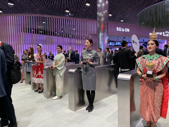 들어가는 입구에는 이렇게 전세계의 미녀들이 맞아준다. 왜 이렇게 했을까 생각해봤는데 아마 전세계의 통신회사 임원들이 방문하기 때문에 이렇게 한 것 아닌가 싶었다.