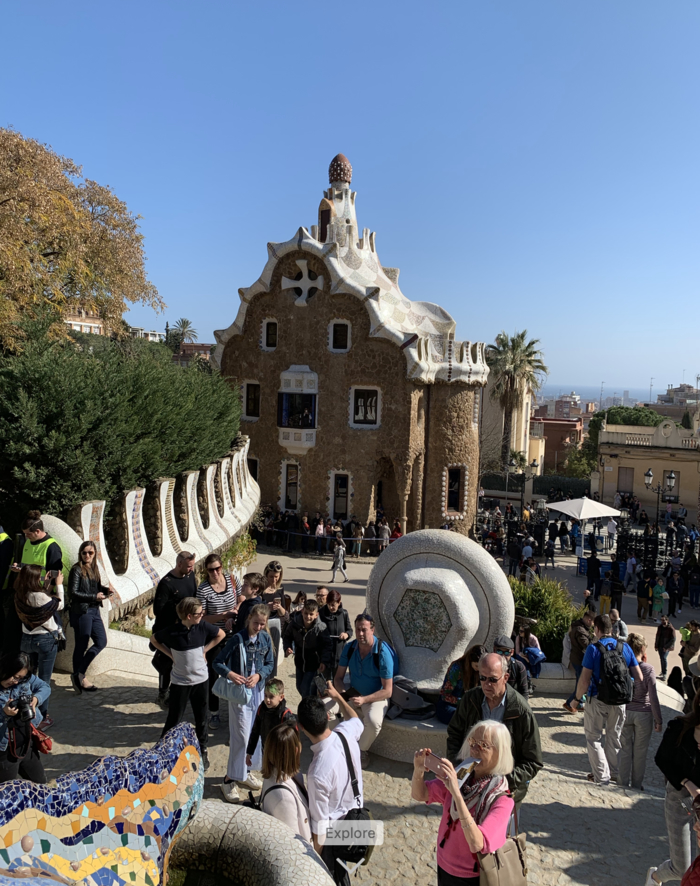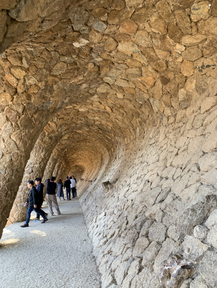 사그라다 파밀리아를 본 뒤 약 2.1km 정도 떨어져있는 구엘공원까지 걸어서 갔다. 스페인의 부호인 구엘에게 의뢰를 받아 만든 주택단지다. 가우디적인 감성이 넘치는 곳이다.