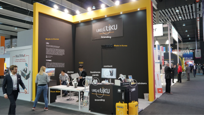 좋은 디자이너를 통해 제대로 된 부스시안을 만들었고 덕분에 좋은 부스 디자인이 나왔다. Liku 로봇 브랜딩을 시도했다.