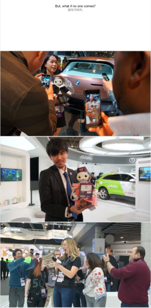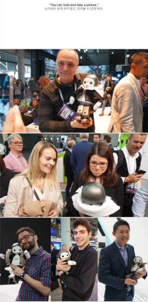 부스를 찾는 참관객들이 눈으로만 보지 않고 직접 로봇을 만져보고 특히 안아볼 수 있도록 했다. 그래서 이렇게 좋은 사진들이 나온 것 같다.