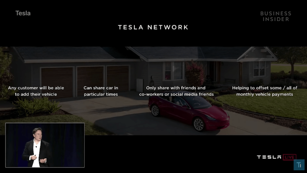 테슬라 오너가 원하는 시간대에 이처럼 차를 내보내서 돈을 벌어오게 할 수 있다. SNS에서 연결되어 있는 사람들만 서비스를 제공할 수도 있다. 번 돈으로 테슬라 구매 할부금을 갚아나갈 수도 있다.