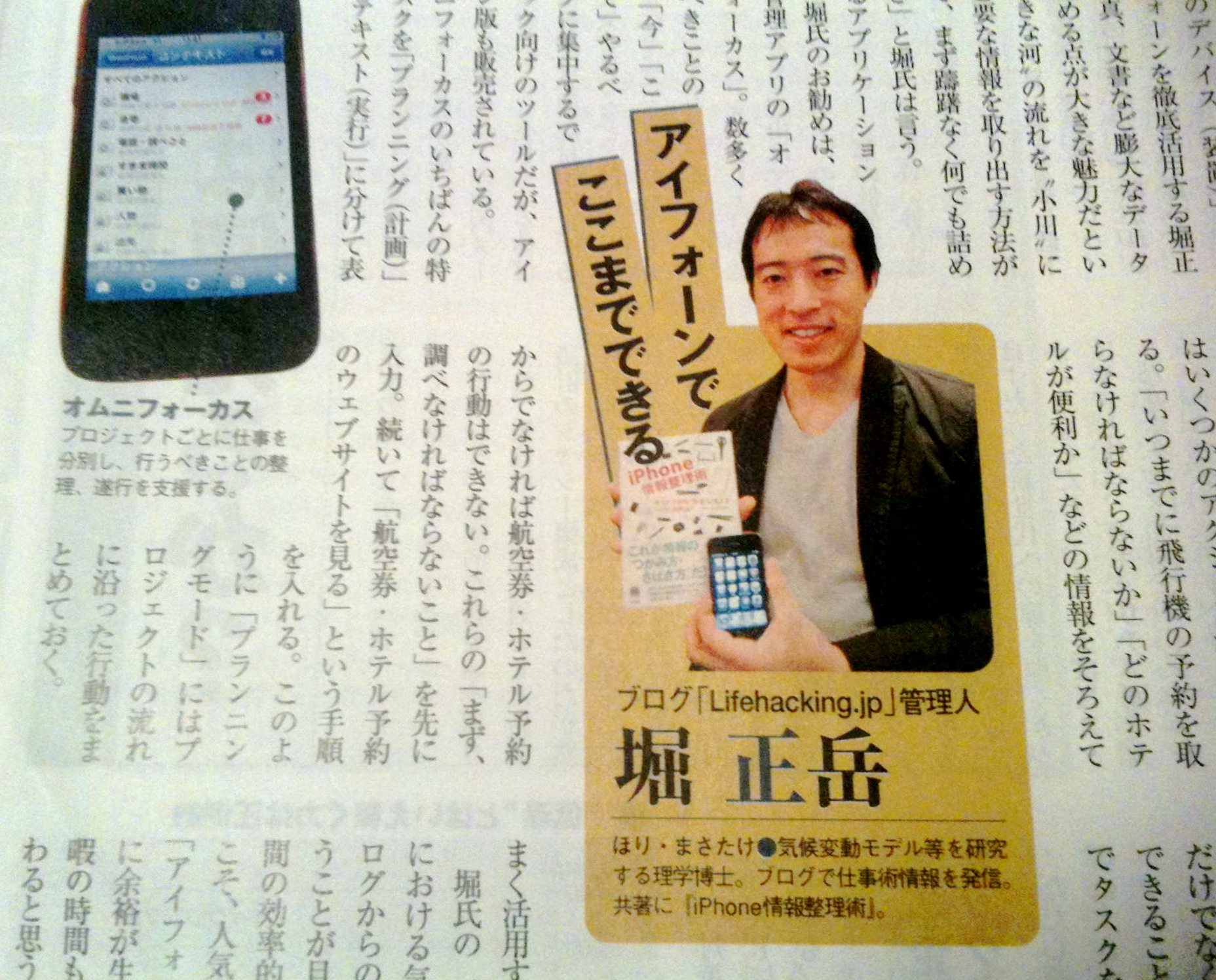 물론 이 잡지에 소개된 모든 사람들이 다 아이폰을 사용하고 있는 것은 아니었다. 그래도 기사에 소개된 사람의 60~70%는 아이폰을 사용하고 있었고 그외 사람들도 일반적인 일본휴대폰이나 Amazon Kindle등을 활용해서 새로운 지식을 얻고 공부하고 업무능률을 높이고 있었다.