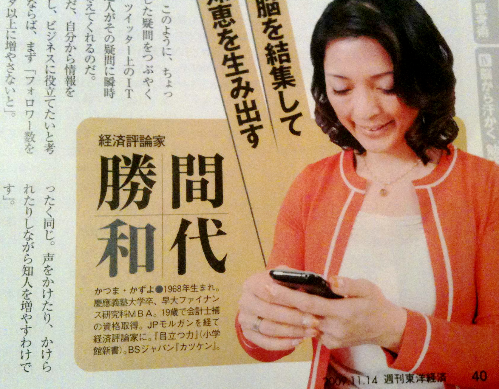 유명한 경제평론가인 가츠마 가츠요씨는 아이폰을 통한 트위터활용에 열심.