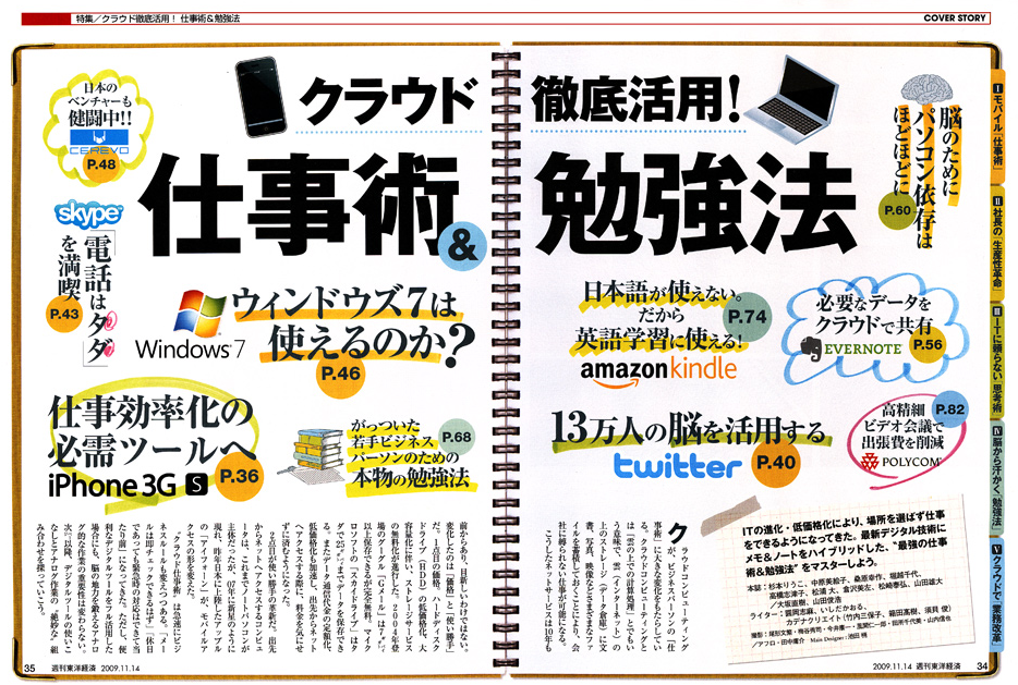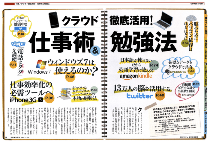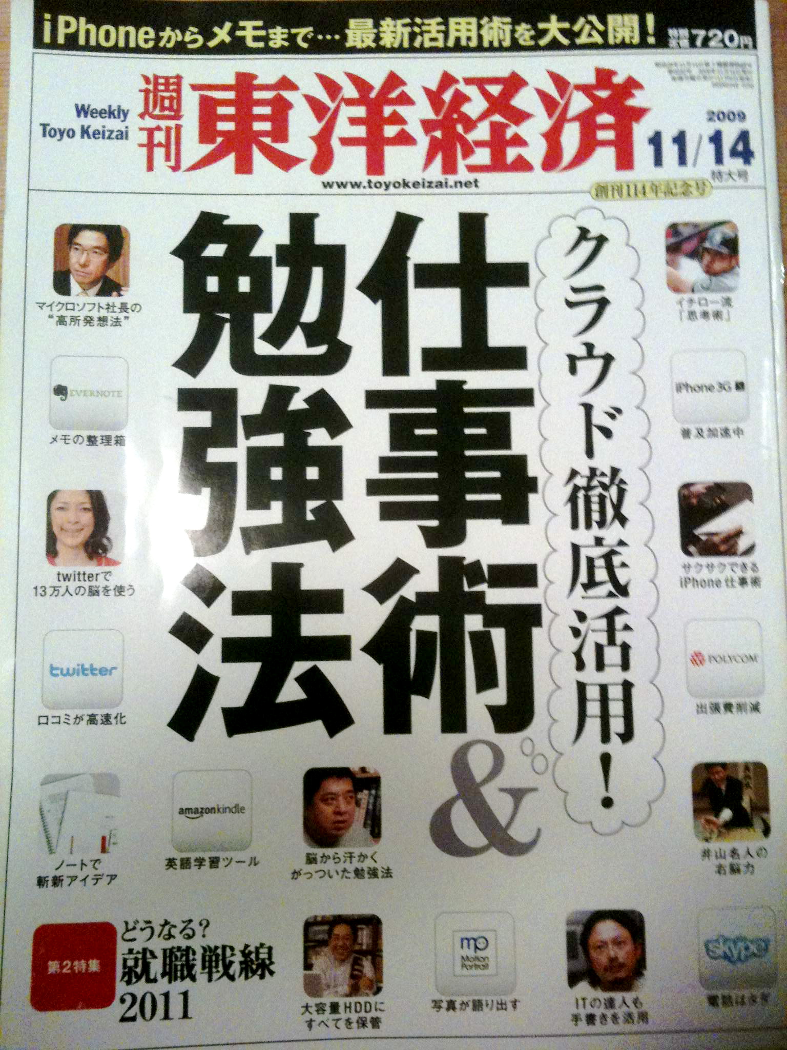 가끔씩 징그러울 정도로 깔끔하게 정리하고 메모하는 사람을 만나는데 마침 일본 출장중에 만난 ‘토요게이자이(동양경제)’가 “클라우드를 철저히 활용한 공부법, 업무방법”이라는 특집으로 커버스토리를 꾸며서 한번 사보았다.