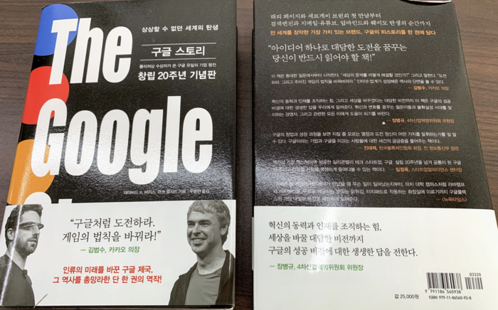흥미로운 책이 나와서 소개. 구글 설립 20주년을 기념해 개정판이 나온 ‘구글스토리’. 인플루엔셜에서 출간했다. 영광스럽게도 장병규 4차위 위원장, 김범수 카카오 의장, 진대제 전 정보통신부장관에 이어 내 추천사도 책 뒷면에 실렸다.