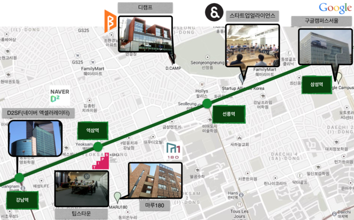 스타트업얼라이언스가 지금의 선릉역 인근 테헤란로 423 현대타워 7층에 자리잡은 것이 2014년초다. 2013년 중반에 디캠프가 오픈했고 스얼 다음에 역삼에 마루 180, 삼성역인근에 구글캠퍼스 서울이 생겼다. 그리고 다음해에 강남역 근처에 네이버액셀러레이터 그리고 역삼쪽에 팁스타운이 생겼다. 그렇게 해서 테헤란로의 스타트업 벨트가 생겼다고 많이 이야기했다.