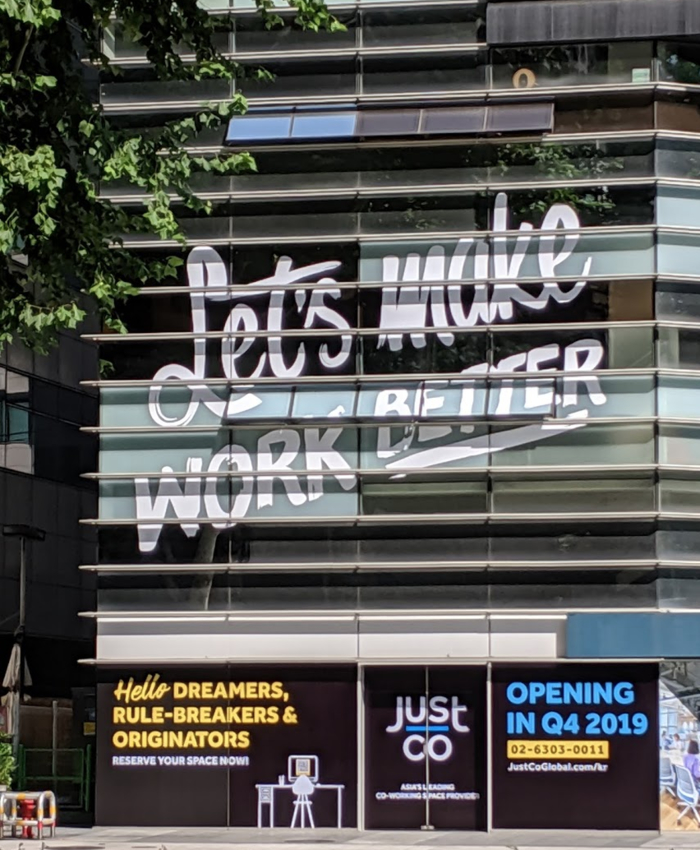 그리고 또 위워크 선릉점 옆에 싱가포르의 공유오피스 유니콘인 저스트코가 16층 빌딩 전체를 임대해 공유오피스를 곧 열 예정이다. (지금은 공사중이다.)