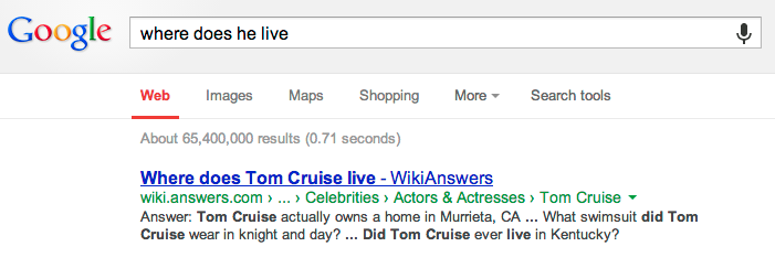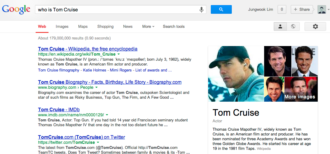 예를 들어 탐 크루즈는 누구인가하고 물어봤다.