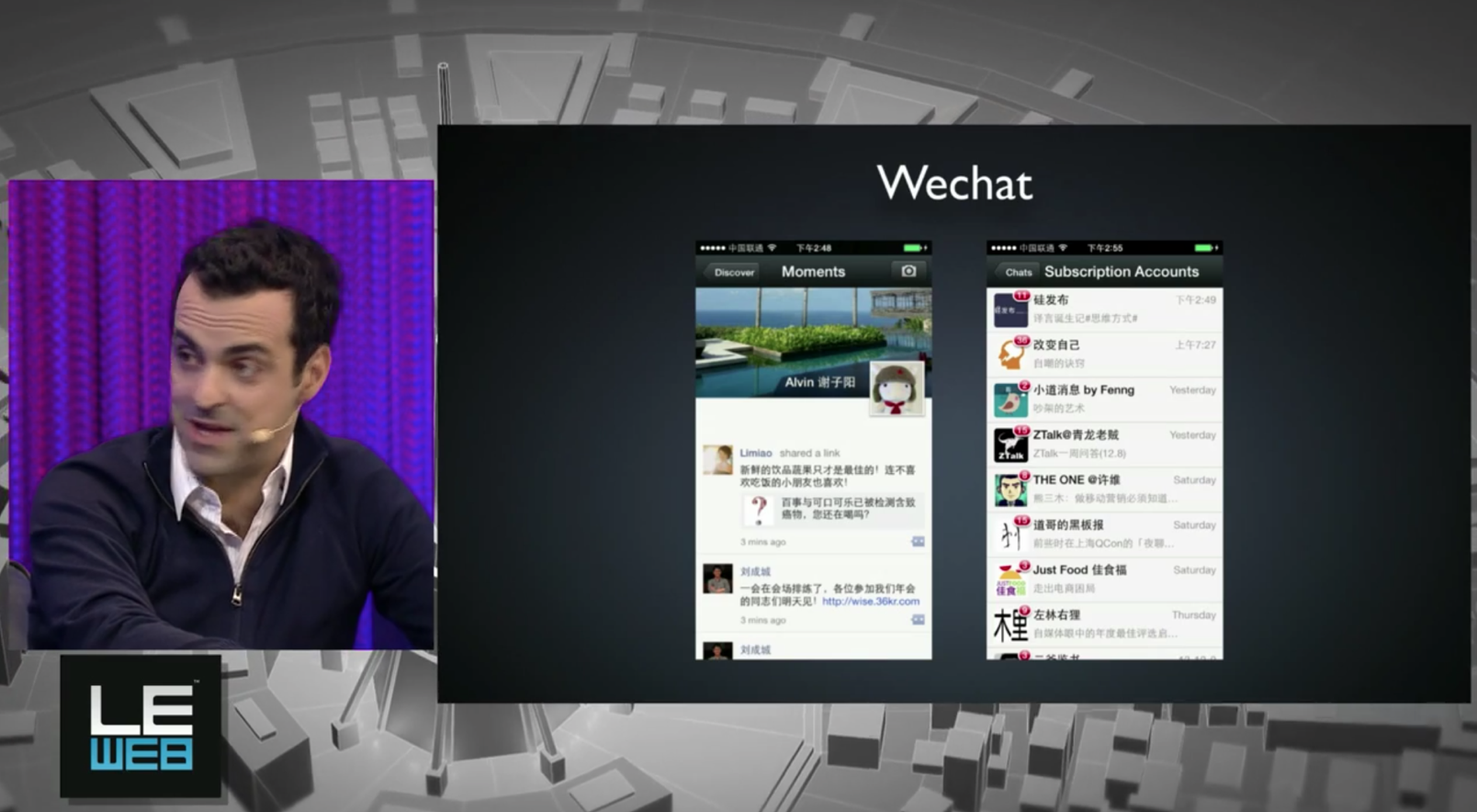 중국을 대표하는 텐센트의 모바일 메신저 Wechat은 중국에서 SNS 그 자체라고 한다. 중국인들은 이 안에서 전화, 이메일, 문자, SNS까지 모든 것을 다 한다.